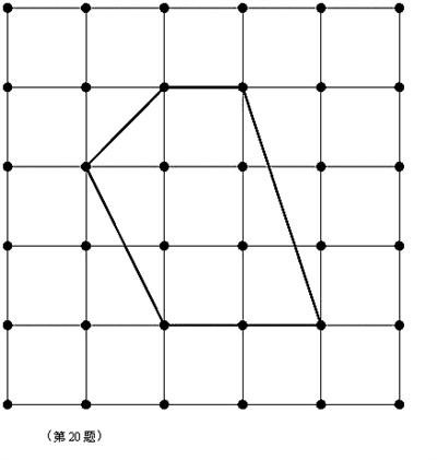 各顶点都在方格纸格点(横竖格子线的交错点)上的多边形称为格点多边形.如何计算它的面积?奥地利数学家皮克(G.Pick,1859~1942年)证明了格点多边形的面积公式: ,其中a表示多边形内部的格点数,b表示多边形边界上的格点数,S表示多边形的面积.如图,a=4,b=6, 。