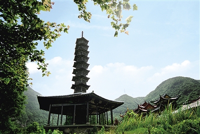 国安寺塔又名国安寺千佛塔,建于北宋元祐五年至八年(1090-1093年)间。楼阁式石塔,平面呈六边形,九层实心。塔顶早毁。残高约17米。台基雕“九山八海”图案,须弥座上、下枭刻有仰、覆莲,束腰各面浮雕狮兽。塔身各层每面壸门内浮雕坐佛,总计1062尊。