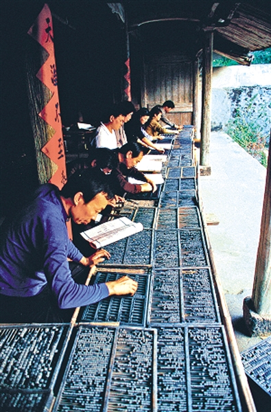木活字印刷术曾在温州普遍存在,迄今已有800多年历史。其印刷工艺十分考究。基本制作工序15道,平时还要做好取材(选取字材)、制字模、写字(字形相反)、刻字等基础工作。刻字时须用坚韧的棠梨木制成字模,印刷须用上好的宣纸。