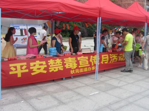 龙湾新闻网讯 为纪念“6.26”国际禁毒日,为深入贯彻落实《中华人民共和国禁毒法》和《浙江省禁毒条例》,6月24日上午9时,状元街道禁毒办组织共青团、妇联、司法、以及各村(居、队)禁毒专干围绕“拒绝毒品,拥抱健康”这一主题,在状元交通中心开展了禁毒宣传活动,营造了浓厚的禁毒工作氛围。此次活动开展禁毒图片展览,增设街道禁毒宣传角,共悬挂条幅5余条,展出宣传板10余块,发放禁毒宣传资料1000余份、禁毒宣传纸巾200包、禁毒宣传环保袋500份,生动介绍毒品的巨大危害,群众接受直观式的宣传教育,对接待前来咨询的外来务工人员,工作人员就相关问题一一作了耐心细致的解答。让他们增强对毒品危害的感性认识,坚定与毒品作斗争的信念;同时开展现场禁毒知识有奖竞答及签名等活动,提高群众的防毒意识,增强拒绝毒品的决心;通过这次活动,进一步提高了广大妇女儿童及群众的识毒、拒毒、防毒的意识和水平,为创造平安状元而努力奋斗.