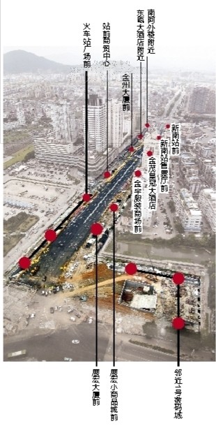 两个下沉式广场,则分别位于火车站前环岛路口的东北角和西北角即温州1号数码城和华盟商务广场的南侧等两个区域。