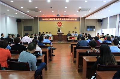 为确保街道食安办完成有工作机构、有专(兼)职人员、有明确职责、有执法协调权、有考核培训和有工作保障的“六有”要求,今年5月,各街道聘请34名人员担任我区食品安全专职协管员,并在上岗前进行为期2天,涵盖农产品(水产品)监管、食品生产、流通、餐饮服务环节监管、餐饮具集中消毒卫生知识、基层食品安全工作等内容的岗前业务培训。在基层形成了一张密集有效的监管网络,为百姓餐桌安全修筑了一面牢固的“防护墙”。