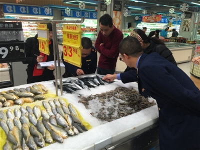 图为区市监局开展水产品检查