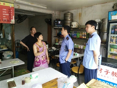 图为区市监局在餐饮店开展检查