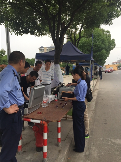 图为区市监局开展杨梅检测