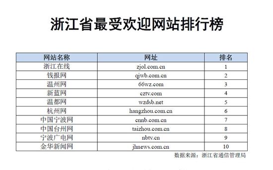 浙江发布最受欢迎网站排行榜 温州网跻身前三