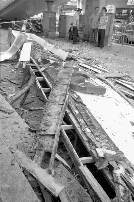 6月那次,据查原因或是“安装不牢固”。昨天这次居民说是“木头腐烂”。