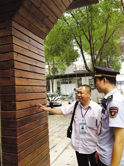 黄色燃气管道从市区聚鑫苑小区8幢楼顶直铺下楼,却在一楼被“拦腰截断”,原来是一楼早餐店用木质建筑将管道包围,只露出一个小孔,这是昨天上午在燃气公司和执法人员联合整治现场记者看到的一幕。