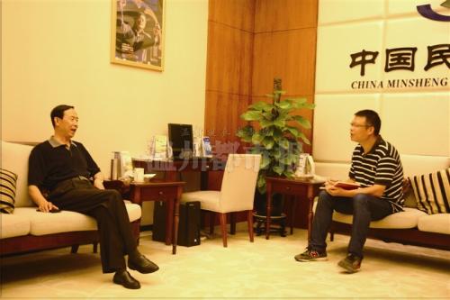 中华慈善总会常务副会长王树峰(左)接受记者独家采访。