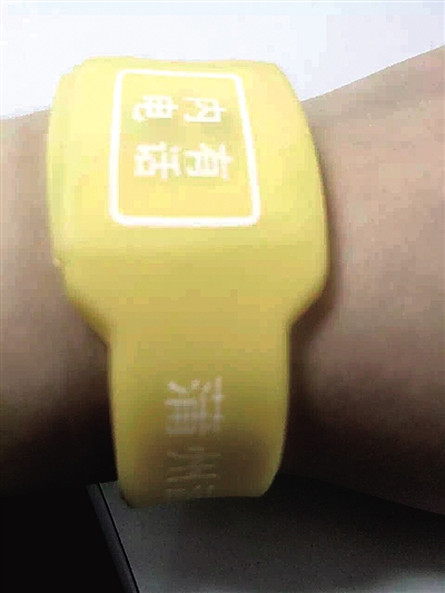 爱心黄手环由橡胶材质制成,上写着“内有电话”,手环中间有一个方形的信息存放口,里面插有一张信息卡,信息卡的内容主要填写孩子的姓名和家长的电话。佩戴上爱心黄手环后,孩子一旦不慎走失,周边群众或接处警民警就能通过黄手环内信息卡上的联系电话直接联系其家人,省时省力让家长找到走失的孩子。