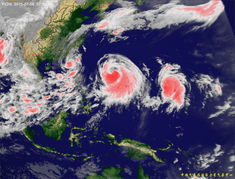 今年情形与2006年的不同还在于,这次三台风之间纬度南北相差不大,因而出现“一字排开”的景象。而在2006年,三台风基本呈现“三角形站位”。