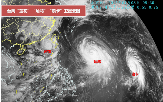 中央气象台预计,今年的双台风“莲花”和“灿鸿”将在未来三天先后袭击我国南部和东部沿海,中央气象台已发布台风黄色预警。建议福建、广东、浙江、台湾等地需做好防御台风的准备。