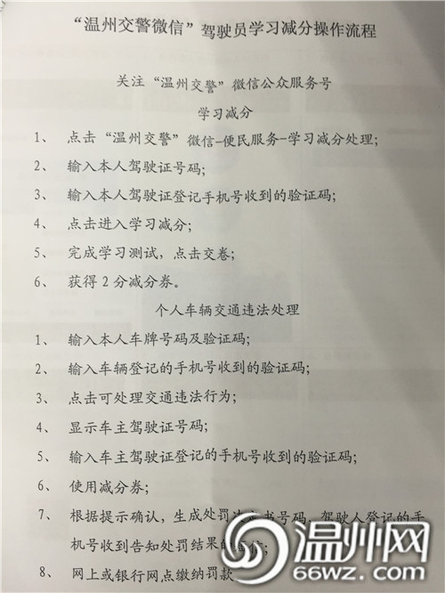 温州网7月9日讯(记者陈克力) 今日起,温州的驾驶员们有福啦!温州交警首推“驾驶员微信学习减分处理平台”,只需在微信内答对9道题,就能被赋予2分分值,可以抵扣平时交通违法扣的分,在一个记分周期内可以学习2次,最多可以得到4分减分。