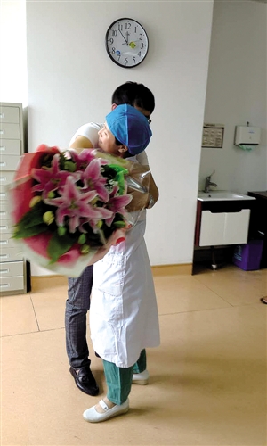 原本,她以为这事就已经结束了,自己只是无意间救了一个人,履行了医生的职责。但是昨天早上上班时,医院的同事来电告诉她,朋友圈里有她救人的照片;中午11点,她从病房回到办公室时,门口站着的是昨天的父子俩,他们手捧鲜花和锦旗,显然已经等了许久。