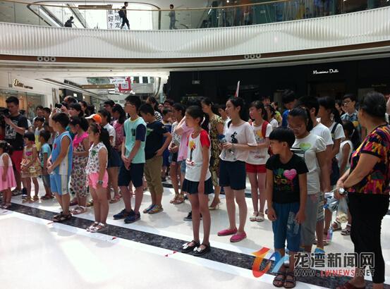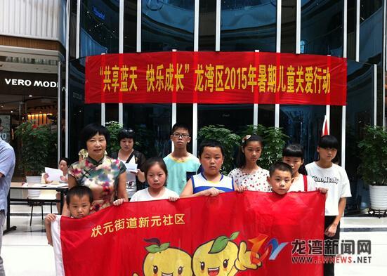 龙湾新闻网讯 7月19日下午,状元街道新元社区组织了50多只“小候鸟”,在龙湾万达广场开展了“共享蓝天·快乐成长”龙湾区2015年暑期儿童关爱行动。