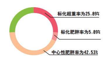 2013年,为了推进我市省级慢性病防控示范区创建,市疾控中心在温州11个县(市、区)开展慢性病社区诊断-慢性病患病率及危险因素调查,共调查18岁以上户籍居民42747人,对于超重、肥胖的有效调查为41242人。采用的超重、肥胖指标就是上述的方法。调查显示,调查人群的标化超重率为25.89%,标化肥胖率为5.89%,中心性肥胖率为42.53%。这表明:按照四舍五入来算,每100人中就有26个人超重,有6个人是大胖子,还有43个人大腹便便……
