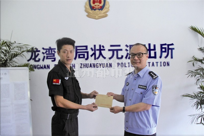 7月21日上午,龙湾区委常委、龙湾公安分局局长李伟专程到状元派出所看望慰问该派出所协警应豪豪,对他奋不顾身跳河擒贼英勇事迹给予点赞(详见温州都市报7月21日A9版)。应豪豪今年27岁,2013年2月应聘为状元派出所协警,他对待工作一丝不苟,特别是近日来,他跳河追捕逃跑嫌犯,及时营救自杀男子,冒险扑灭燃烧大火的事迹,更是深受群众称赞。