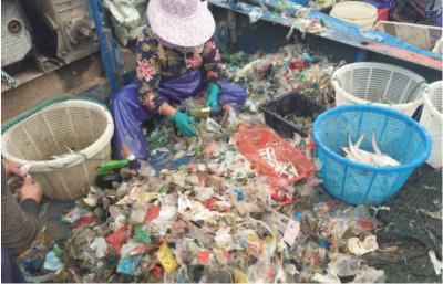 而渔民们捕捞的垃圾还远不止这些。据当地渔民介绍,经常在该码头停靠的渔船有20多只,每天这些渔船收网时,一张网都会顺带拉上来几百斤的垃圾。说着,康老伯开船将记者带到渔民们捕鱼的江中,几位渔民正将一张渔网收上船,渔网里满是食品外包装、尼龙和废纸片,只有几条小鱼零星地散落其间。一些渔民告诉记者,若遇到暴雨或台风天,一网下去就能拉上来一吨重的垃圾,20只船就有十几吨垃圾,最糟糕的是拉到那些已经死亡腐烂的牲口,又脏又臭,令人作呕。