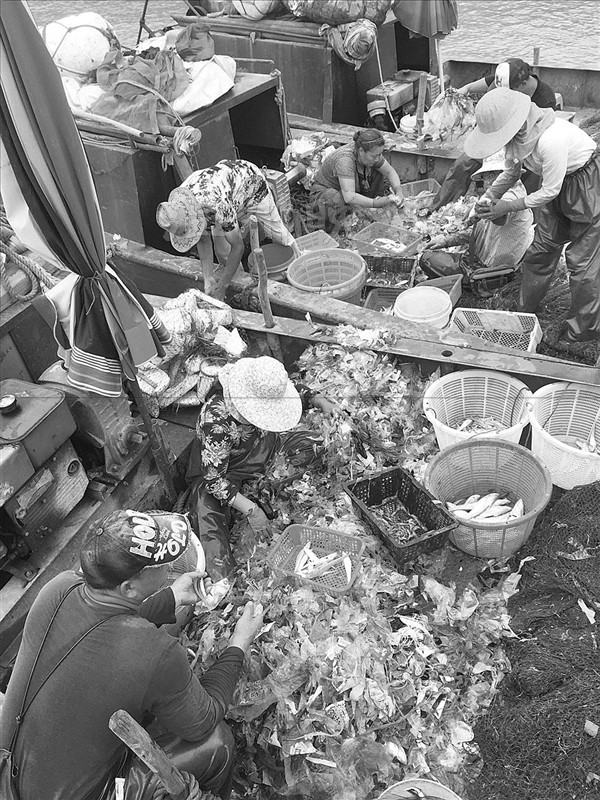 无奈的渔民只能每次从这些垃圾里挑出捕到的鱼虾,再把这些江底“捕”上来的垃圾重新倒回瓯江,每天反复。