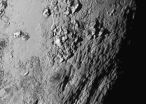 进入视野的每一个特征几乎都是由冰以某种方式塑造的。行星科学家已经通过地基观测发现冥王星表面存在氮、甲烷及一氧化碳冰。而新的图像则揭示了这些冰存在于哪里及其表现如何。