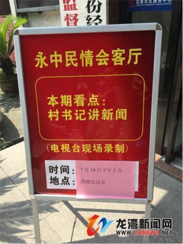 龙湾新闻网讯 “听完国家要闻、区和街道新闻后,下面我讲讲我们村6月份的新闻:6月9日,联系我们村的区委农办(农林局)局长郑小强带队到村里调研,指导帮助解决村里的3个难题,第一件是山林防火房项目审批…….”这是永中街道坦头村书记许绍钦在“民情会客厅”当主播讲新闻活动的一幕。