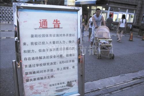考虑到安全并请示上级有关部门后,瓯海中学最终还是决定从8月4日起叫停傍晚向社会开放校园体育场地,早上照常开放。