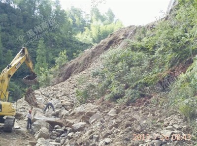 连日来,泰顺县泗溪镇溪源蒋家山自然村建造通村公路,一处处山体被挖机挖开。前天,苏先生路过此地时,发现石堆中,有块石头金光闪闪的。苏先生感到十分奇怪,于是立即来到挖机挖过的岩层观察,结果发现数十米长的岩层均存在类似情况。