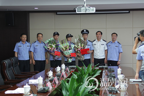 图为温州市委常委、公安局长黄宝坤慰问处警人员