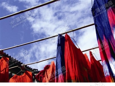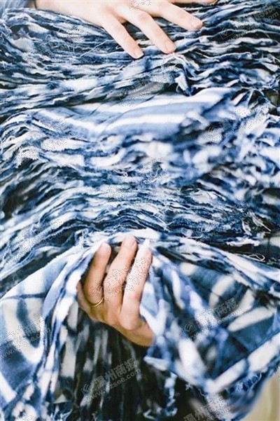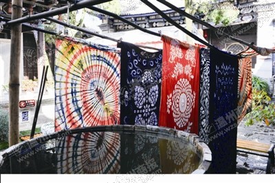 扎染是中国民间传统艺术,它采用的方法与蜡染有些相似。但比起蜡染来用扎染的方法染出来的图案更加生动,扎染是用绳子来缠一部分面料,被扎住的部分沾不到染料,其他部分就形成了与染料一致的颜色。布帛上被缝缀的部分以及因缝缀而折叠的部分,在浸染中染料无法渗入染色,它与染了色的部分形成反差,根据缝缀者构思的花纹图样便完全显现了出来;又因在缝缀时针脚不一、染料浸染次数和染料的浓度不完全相同,缝扎花纹图案的边缘部分受到蓝靛溶液的浸润程度不一,图案便产生了自然晕纹、洇浸、泼溅、渗透、淡入或淡出的艺术效果,使整幅扎染布帛的图像色调呈现出青靛闪翠的印象派风格,艺术画面有如中国画泼墨大写意般艺术效果,意境若隐若现、如梦如幻,给人们留下了巨大的艺术想象空间。用扎染制作的衣裙、床单、门窗、窗帘、茶席、抱枕等,穿在身上,或装饰在室内,别有一番古朴、典雅的风味。商报记者 郑丽娟