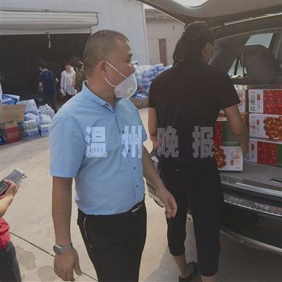 8月14日下午,天津温州商会副会长姚均呈发动其公司员工开展志愿服务,并捐赠价值3000元的饮料。