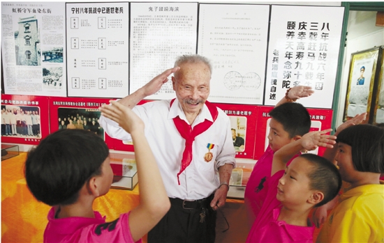 近日,在温州龙湾区海滨街道宁村,由95岁抗战老兵潘庭槐自费开办“草根抗战展览”,向每一个来访者讲述那段难忘的抗战历史。