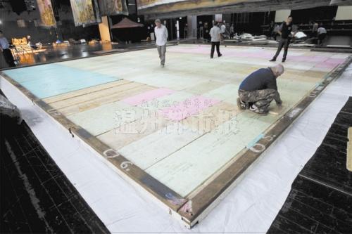 由于歌剧厅舞台下方就是剧院各种设备,因此在制作冰面的过程中必须要保证水不会渗到地面上。据领队介绍,整个冰面制作过程需要24个小时,具体步骤有: