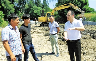 韩包强(右)对九村河整治工作进行督查。苏巧将摄