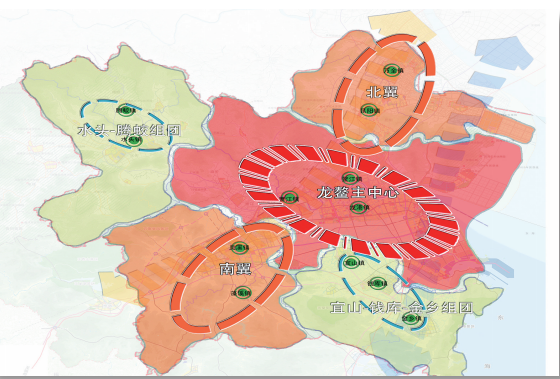 规划指出,平苍副中心将打造形成“一心两翼两组团”的功能结构。其中,“一心”指龙鳌主中心,由龙港、鳌江、萧江三个城镇组成;“两翼”分别为南北两翼,北翼由昆阳、万全两个城镇组成,南翼由灵溪、藻溪两个城镇组成;“两组团”指宜山-钱库-金乡组团和水头-腾蛟组团。