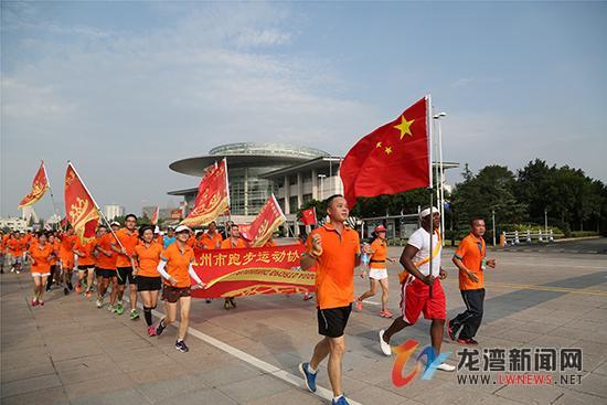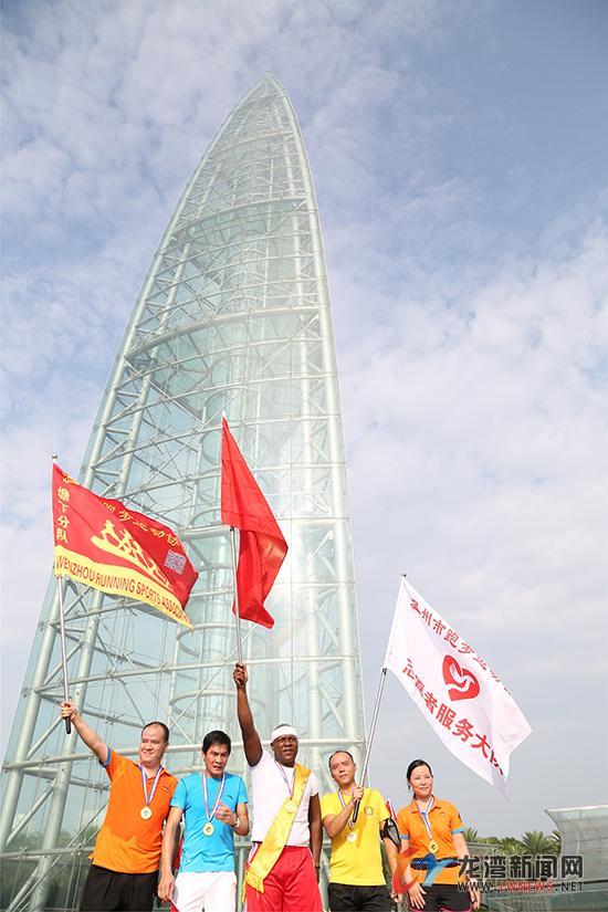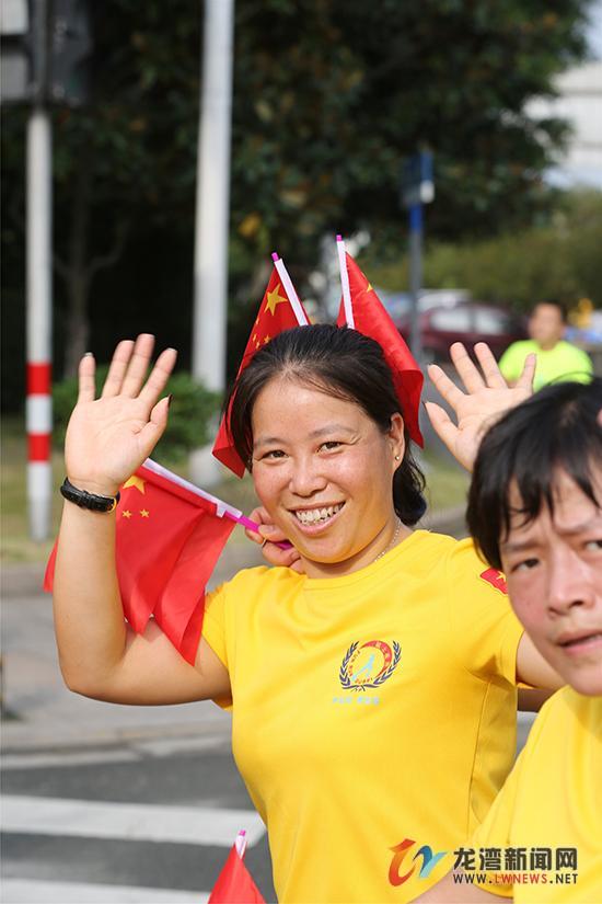 领跑的温州市跑步运动协会会长涂瑞弟是龙湾的一名企业家。今年1月,他参加香港100公里超级越野跑勇夺金奖。40多岁的他对记者说,感谢祖国改革开放政策让农民发家致富,虽然自己参加跑步运动时间不长,但跑步既是一种健康的适合推广的全民体育方式和出行方式,也是对温州创建“六城九市”活动身体力行的积极响应。他希望国强民安,人人健康。来自温州工人文化宫的外教托尼来自南非。他说,他在中国12年,其中在温州8年,去年还在温州结了婚,参加跑步运动已有4年,他今天很开心拿着国旗领跑,中国和南非是友好国家,他祝愿中国越来越强大。龙湾分队朱道清是上月温州市第二届全民健身体能大赛的冠军,在温州群众体育界久负盛名。这次他放弃假日休息也组织了多名队友参加本次活动。