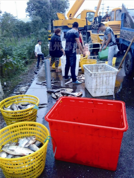 千余公斤鲜鱼凌晨2时落地,司机等人到天亮才把鱼捡完。