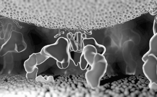 HIV的gp120蛋白会同白血球中的CD4受体结合。 图片来源:Subramaniam Lab