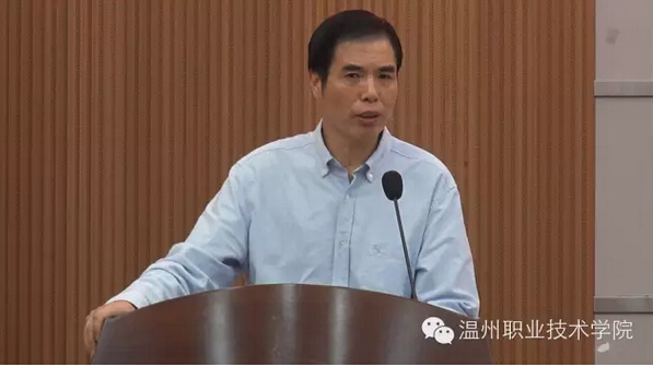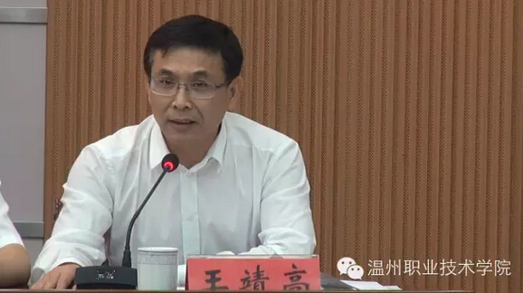 温州职业技术学院新任党委书记王靖高作就职发言。