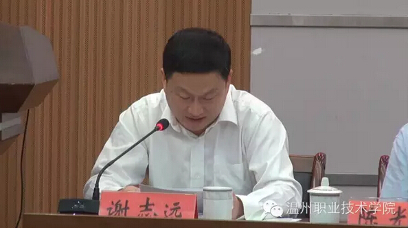 会上,叶志航副处长宣读了王靖高同志任职温州职业技术学院党委书记的文件,汪晓村副书记、胡永锋副部长、学院党委书记陈光天、学院院长谢志远分别作重要讲话。