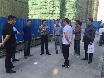 图为街道领导现场解决拆迁难题