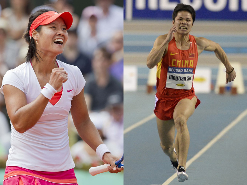 在欧美人统治的传统体育强项中,中国人也取得巨大突破。李娜先后在2011年的法网和2014年的澳网上两夺女单冠军,成为亚洲第一位大满贯女子单打冠军得主,并一度排名世界第二,成为亚洲女单世界排名最高的选手。 9秒99!2015年5月31日,在国际田联钻石联赛美国尤金站决赛中,苏炳添一举打破10秒大关,在随后的北京田径世锦赛上,他再次以9秒99的成绩成功杀入决赛,成为第一个闯入世锦赛男子百米决赛的黄种人。而由莫有雪、谢震业、苏炳添、张培萌组成的中国队在男子4x100米接力比赛中更是实现历史性突破,一举夺得亚军。