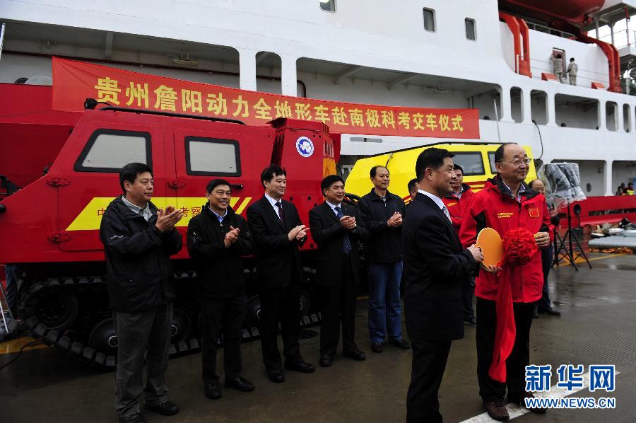 新华网上海11月4日电(记者张建松)我国极地考察装备国产化迈出重要一步。由中国极地研究中心和贵州詹阳动力重工有限公司共同研发的我国首款极地全地形车,4日在中国极地考察国内基地码头举行交车仪式,即将随“雪龙”号出征南极,加盟中国第32次南极科学考察。
