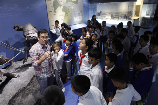 主题教育活动卓有成效。借助更新后的“海山钟秀”历史文物展和纪念抗日战争70周年图片实物展等新平台,龙湾区文博馆积极探索爱国爱乡教育模式,谋划主题教育活动。纪念抗战胜利70周年展厅突出温州抗战、龙湾抗战事迹,以身边的抗战老兵和文物为亮点,弘扬抗战精神,开展爱国爱乡教育。承办了“温州机场集团新党员入党宣誓仪式”;国庆期间开展“向国旗敬礼,做有道德的人”观众签名活动;接待温州市、龙湾区各中小学团队参观、主题活动。为保证参观效果,文博馆安排讲解员进行讲解。展览同样吸引了不少专家学者、社会团体、文史爱好者群体参观。国家文物局原副局长董葆华、浙江省水利河口研究所教授李永和以及温州非遗志愿团等专程参观,给予高度评价。