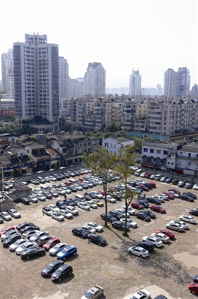 日前,记者来到该地块现场看到,地块除四周保留有老围墙外,场地上已无任何还能阻碍施工的土建构筑物,但现场却见不到施工机械和人员。偌大的场地已成了一个社会公共停车场,停满了社会车辆,一眼望去足有上百辆。