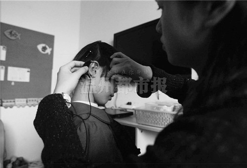 该负责人建议,一旦家长发现孩子有听力障碍,一定要尽早给孩子佩戴助听器,充分利用孩子的残余听力,对孩子进行听力和语言训练。如果听障儿童能在3岁前佩戴助听器并进行康复训练,开口说话的几率非常高。如果超过6岁才进行康复训练,孩子声带已经变硬,康复效果会大打折扣。(记者王雄涛/文卢伊拉/摄)