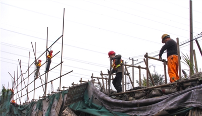 龙湾新闻网讯( 杨豪 摄) 日前,丽水市莲都区发生山体滑坡,造成人员伤亡和重大损失。我区根据省市统一指示和要求,启动对辖区内地质灾害隐患点进行排查,并复查灾害点管护工程。图为机场大道茅竹岭地质灾害点,施工人员正在对管护工程进行加固处理。