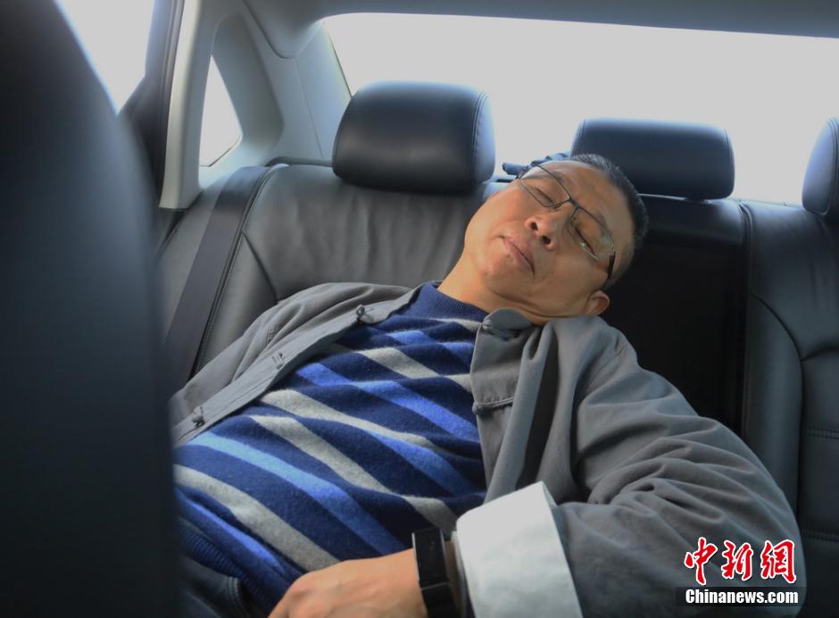 完成了2台手术后,罗志刚抓紧在车里小睡一会。曹正平摄