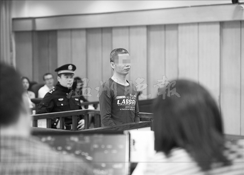 昨天的法庭上,7名被告人在被告人席上站成一排,被告人谢某因病无法到庭。