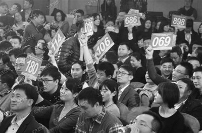 招标大会现场,手拿686的翼龙贷董事长王思聪频频举牌。