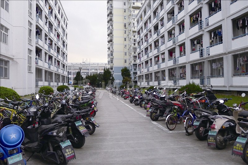 昨天下午,记者在温州大学城几个学生生活区内看到,学生宿舍楼的周围停满了车子,除了部分自行车外,停了很多电动车和无牌燃油助力车。